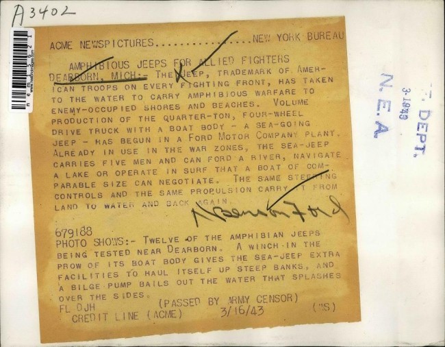 “This is an original press photo. Dept – US Army, Credit – NEA and ACME Photo measures 9.25 x 7inches. Photo is dated 03-16-1943.”