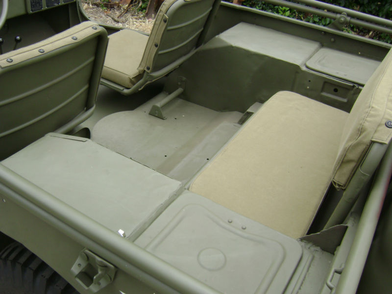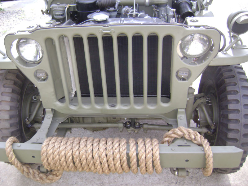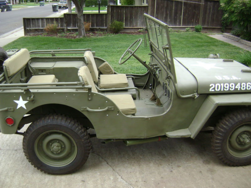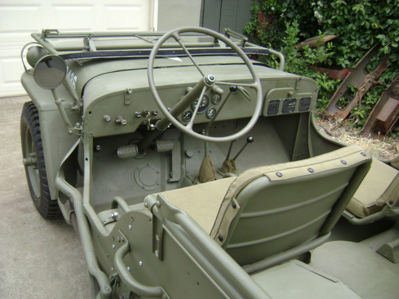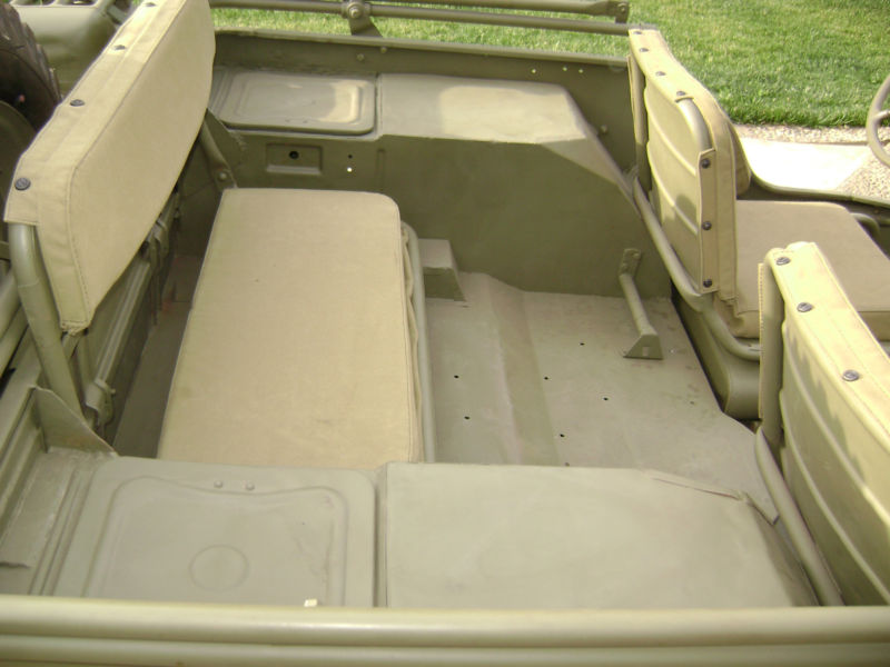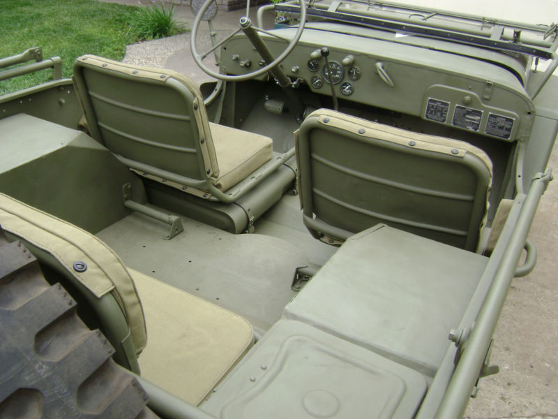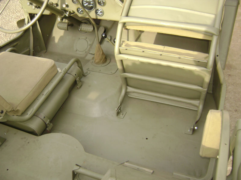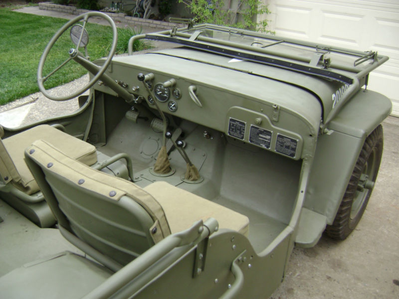 The Firestone tires, wiring harness, spare data plates, gas tank, tail lights and horn are all new replacements and are 100% correct. The jeep is still its original 6 volt configuration. The seat covers are new . All of the combat rims are strait originals. The battery is brand new and this jeep starts, drives, shifts and stops with no problems at all .
