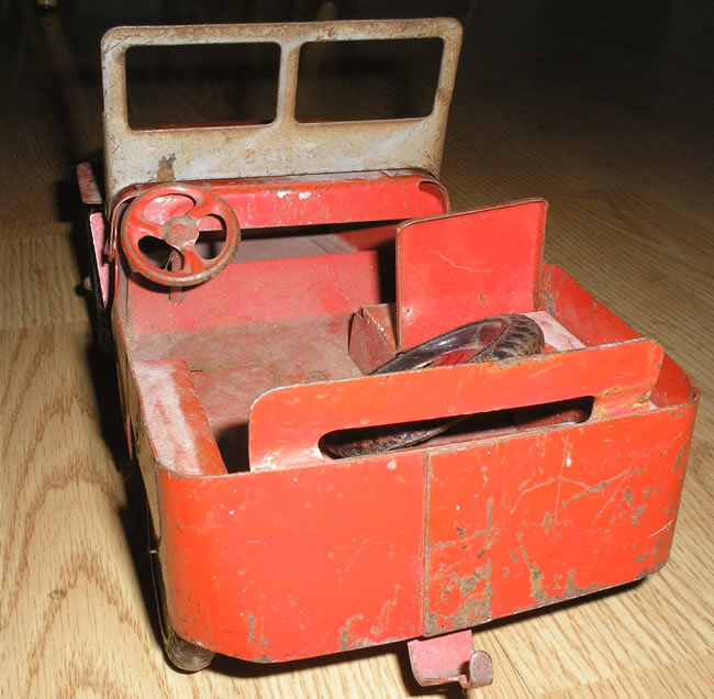 It looks like Blaine did well at a collectible toy swap meet. The yellow ride-on jeep is from 1979 and was made in Canada.