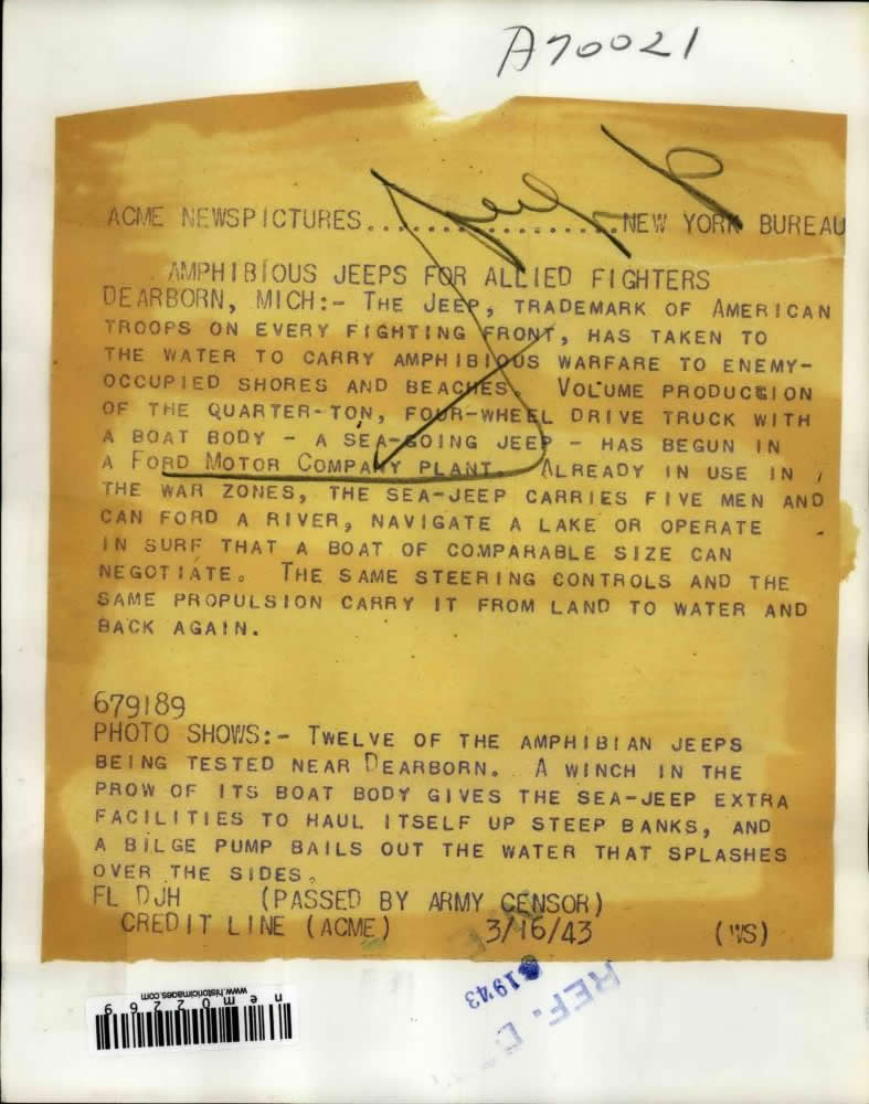 “1943 Press Photo Sea Jeep production fro the Army in Dearborn Michigan”
