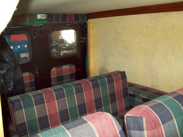 This delivery wagon looks in good shape. Check out the unusual upholstery.
