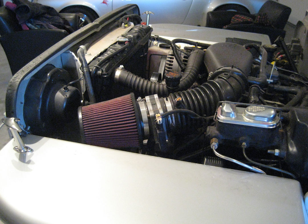 Engine, transmission and computer were taken as one unit from a 1998 Chevy S10 Blazer with approximately 50,000 miles on it. This common 4.3 L V6 and matching 4L60E automatic transmission are low maintenance and inexpensive to service. The computer was set up by a Chevrolet dealer and service records for this engine are included. Exhaust manifolds are stock and exhaust pipe is single with one turbo muffler. This muffler makes the V6 sound like a V8. New FI, water pump, and pan have been added as well as the usual maintenance items. Engine is cooled by a chopped Mustang 3 core radiator with Perma-cool electric fan. AirRaid air filter.
