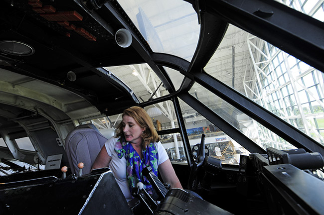 Even better, if you pay $25 you can tour the flight deck and sit in the cockpit. Since our entrance was free (thanks to Ann) it was a no brainer to pay for this extra. She was especially excited. For our fee, we got to tour the flight deck area, get our photo taken by the tour guide (and a copy of it printed) and hang out inside the plane for a while. It was cool!