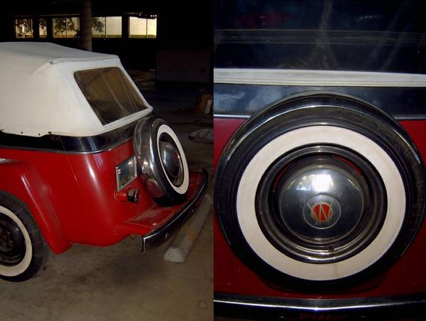 Everything is straight on this Jeepster – All gauges & radio worked when last running. Outstanding heater! Interior very straight. Gangster-wall tires have new inner tubes. Since forced inactivity, it’s been up on jack stands. Always been covered and garaged while I owned it. Included custom Jeepster-fitted cover from LA company.