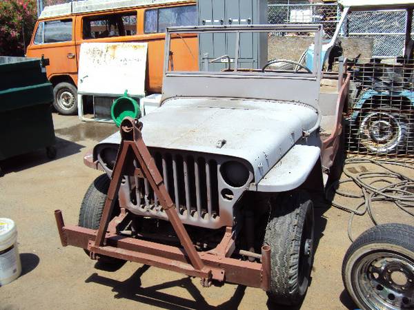 “Up for sale a Willys Jeep original frame tag has the original VIN that falls in the 1945 production year. No longer in the DMV system, sold with bill of sale. NO TITLE IN HAND BILL OF SALE ONLY. Rolls and steers does not run. The spark plug wires and distributor cap are missing, will need some love to get running again. No scammers, spammers, resellers, Nigerian dignitaries, leave phone number if you want to come look at it. Price is negotiable but lowballers need to come look at it and have cash in hand and a trailer to haul it away.”