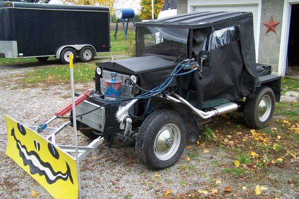 “Jeep 4X4 for plowing snow, pushing dirt, or whatever. Buick V/6,3 speed, High/Low Range, lock outs. Body was replaced with a home made wood one, kinda neet. Has Top and Curtains, with plexiglass windows. Runs good, needs some tinkering and fine tuning on a few things. $ 1650 or trade for what have you? Rod 989 928 23 four one. Also have a Willys truck cab to go with it for another $ 150.”