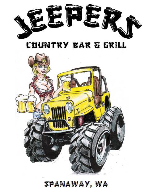Jeepers Bar and Grille just opened in Spanaway, Washington (map). For me it is conveniently right on the way to my sister’s house in Roy. So, we’ll be stopping by at some point. Not only does it feature a CJ-3B on the menu and logo, but there are several large vintage jeep photos around the place. My cousin Eric dropped by on Thursday and told me they enjoyed the place.