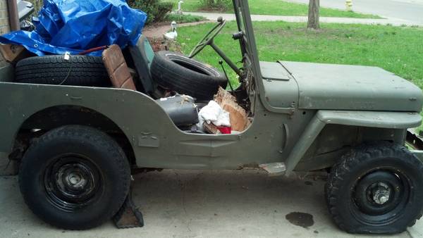 “It missing the radiator and need a battery but other than that it’s all there. The engine is free and will turn over with a battery hooked up to it. It is a former army jeep and the title has been lost over time. Would make a great restoration project I just don’t have the time for it right now. Fill free to call or text me with any questions or for more pictures.”