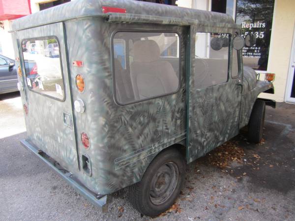 “1981 Mail Jeep for sale. Runs good, has GM 2.5 engine and auto trans, 2 wd, good rubber, milage unknown”