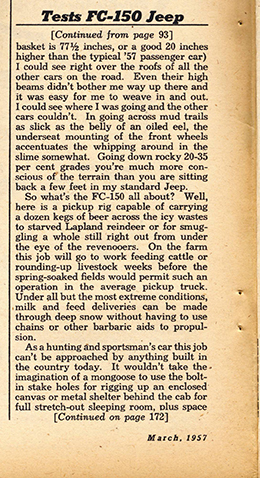 1957 Mechanix Illustrated Article about the New FC-150