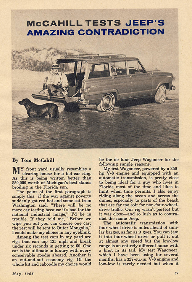 Thanks for posting this Dave, it was great to read after so many years. Tom McCahill was always critical about something, but not the Wagoneer. At the age of 15 back in 1966, That’s what impressed me as it does today. Tom always told it like it was; an endorsement from Tom McCahill, what more could you ask for.