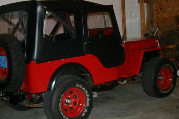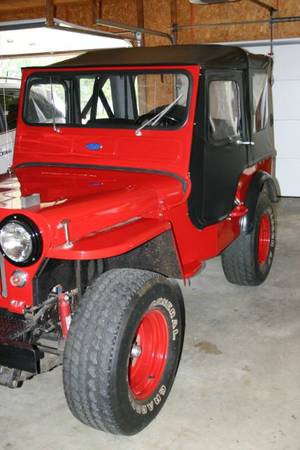 “1951 Willys Jeep in excellent condition. Several year restoration–in storage since completion with very little use. Comes with soft top and extra set of tires. Ford V-8 302 powered, stick shift. No rust. Original except for engine. Needs minor TLC. The hydraulic brakes and clutch need bleeding.”