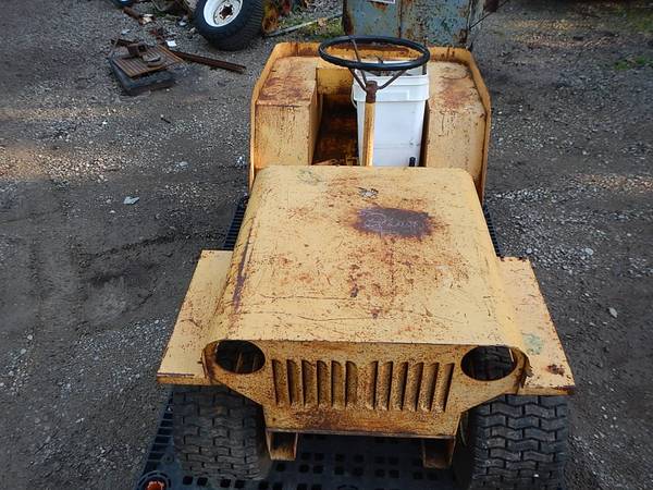 “RERE STRUCK BEEP Garden Tractor with Snow Blade. Rust free and the nicest body you will ever find. Have all parts motor stuck. Have the book for it.”