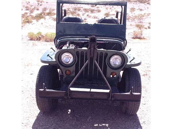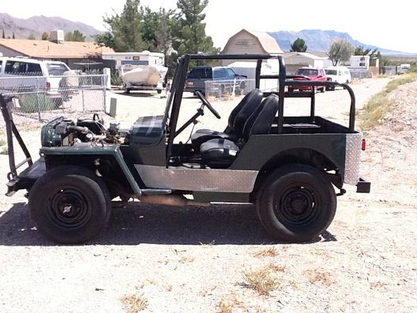 “1942 Willy Jeep, original jeep running gear attached to a Corvette 265ci V8…runs great and would make an amazing 4×4 or hunting vehicle. Serves as a cool buggy in the sand out at the lake. Already has a fresh coat of british racing green paint, new fuel cell and electric fuel pump, rewired, bucket seats, roll cage, new clutch linkage…..runs and drives great!!!“