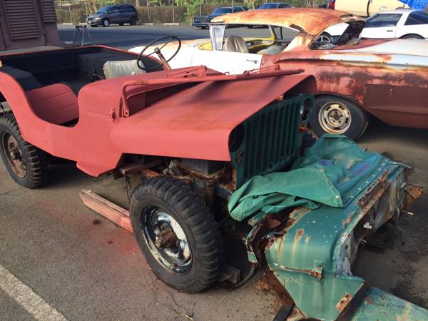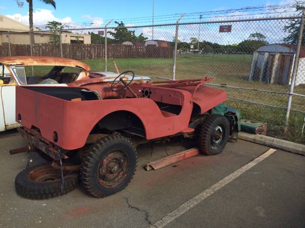 “I have a classic 1942 Jeep Willy for sale. It was purchased as a gift for a project but my buddy is leaving island so he asked me to sell it. It has all the parts and manuals to get it done. It has new wiring harness, tub, fender wells, seals, etc. It all just needs to be put together. Price is $2700 OBO. Please don’t low ball as my buddy is loosing out $2k or so on this deal”