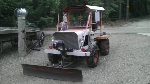 “4×4 tractor with blade to move the snow that is on it’s way. Good for plowing snow or dirt work. 4×4 has all jeep running gear. Has a hydraulic system. Turn key ready $1450. cash or give me a call and we can discuss a trade. Looking for a gas motor golf cart.”