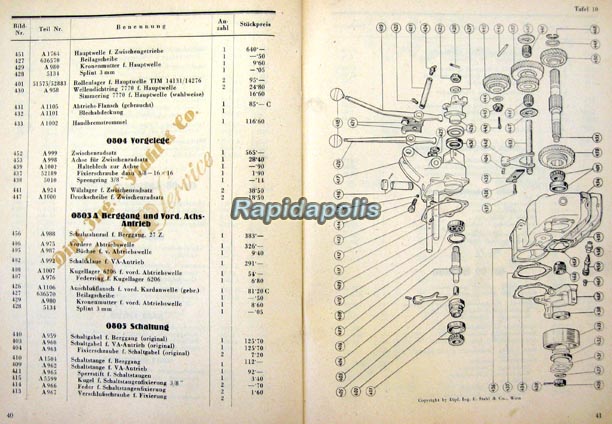 “This auction consists of two items: a heavily illustrated 68-page Jeep Vehicle Catalog and Parts Price List number 12 dated January 1956 for a company called Jeep Service Dipl.Ing. E. Stahl & Co. in Vienna, Austria, AND a 12-page parts price list dated 1 January 1956 for the US Military Model MB jeep from the same firm. The smaller catalog is attached inside the front cover of the larger 6 x 8-¼ inch catalog.”