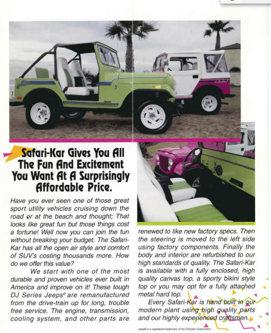 Note: Another firm started up about the same time as Safari-Kar on the east coast.