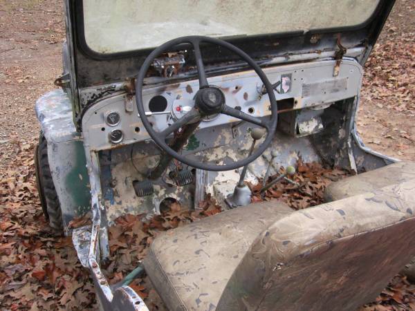 “63 willys cj3b was running when parked two years ago. i just lost interest. f head 134 engine with three speed. brakes need master cylinder like they all do 4 wheel drive and transfer case all work. even has a heater but no top or doors. i put a one wire alterator on it and just drove it on trails. but i do have title. also a 63 cj5 parts jeep with a locked up transmission. i got the motor to run after i got it home but thats all. it has the same running gear and a p.t.o winch on it. also have a spare motor and manifolds that i got from a scrap metal man. ”