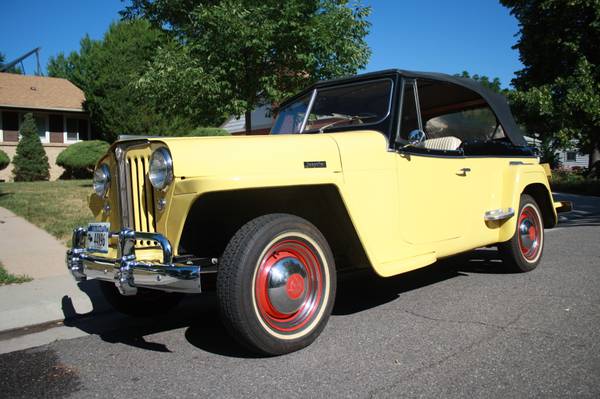 “1948 Willys Jeepster; Fine example of an older restoration. Runs well, overdrive works, mechanically sound. Some old parts included such as: heater, radio, fuel pump.”