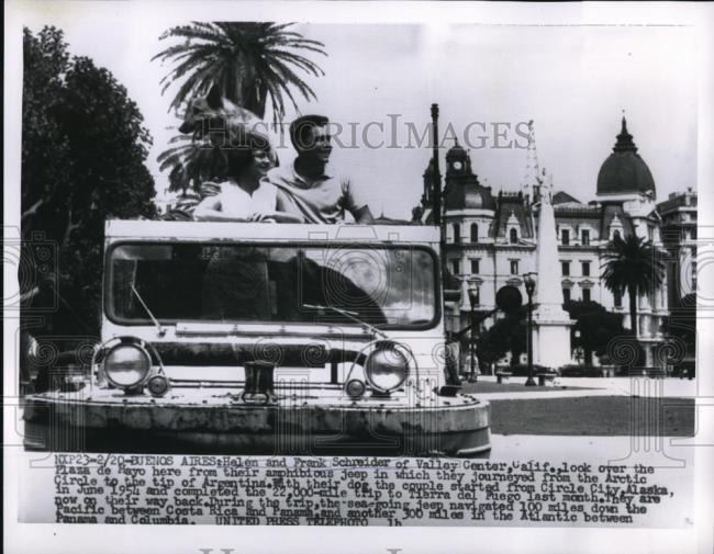 “1956 Press Photo Helen and Frank Schreider Viewing Plaza De Mayo From Their Jeep”