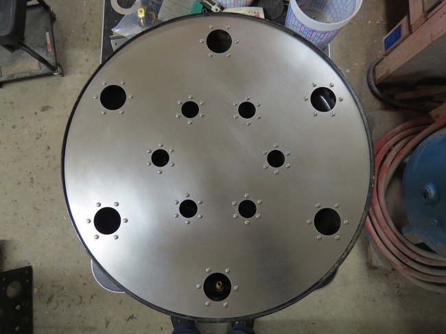 Each hole will have a reinforcing ring fastened to the back side of the disc either by 1/8th inch diameter monel raised head style rivets or 3/16” dimeter stainless steel machine screws (the size of the machine screws used on the door just below the window). These doublers and rivets are for style only and not necessary for strength. Each disc will be attached to a wheel by six stainless machine screws and these screws will thread into steel mounts welded to the wheels.”