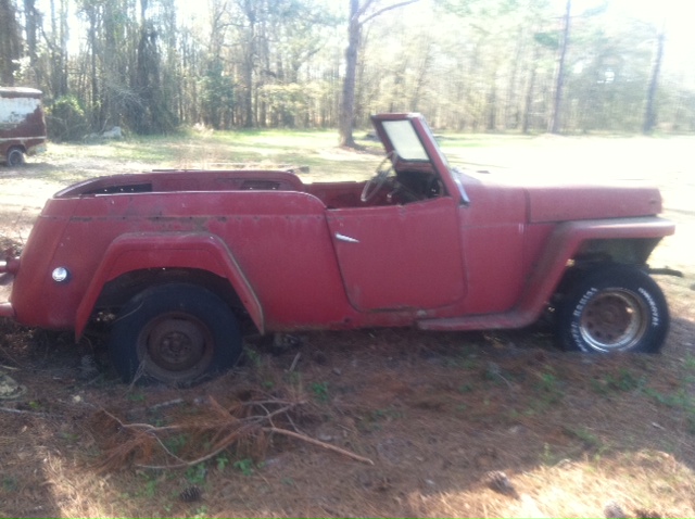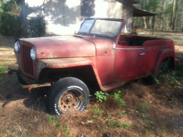 “1949 Jeepster in need of restoration. I have most of the hard to find parts. It needs floorboards as these have rusted out, but new ones can be found on ebay and other places. It has some rust but I think it is a project worthy of the attention. I did not know the floor was rusted when I bought it, they had put metal signs over it and covered it with carpet. I have a flathead 6 and 3 speed tranny. The frame for the top is stored along with heater and other parts. I also have a flathead 4 with tranny in a 1948 station wagon if that was of more interest.”