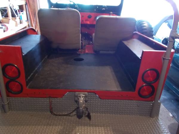 I talk to the owner who owns this jeep. He bought it at auction. It used to be Warren fire departments jeep. According to the owner it was stripped of all the sirens, tool mounts, pump, and water tank. He says it all original, but as stated the removal of the fire equipment leaves this jeep in dispair. Again according to the owner there are multiple holes that would need to be repaired and fix to bring this jeep a solid jeep body. He stated its “rust free” but then told me the original back floor is rotted out. I asked about the large plate that is weld in the back floor area. He said we was not sure if they originally put that in to help support the FD tank/pump or if it was put in after as a fix later down the road from the weak rotted floor. He seem to think that water at some point got between the plate and the original floor and then it rusted out. I know he made mention of some body repair that had been made to the jeep (like a fender) by the FD that was damaged in a wreck of some type. He also mention some other type of rust but it was not a huge issue. I asked him about the wiring harness since fire departments have a lot of lights, sirens, Chargers, and radios. He said it was all removed but the mess of wiring still needs to be cleaned up and he was not sure of the condition of the splicing and hacking into the original harness. He did add it is 12v, it has a generator (not an alternator), and all the gauges work. On top of all the mess above he was not sure if the frame had been welded up for strength to support the frame. The tires don’t hold air, it leaks a little oil (typical), has no top or doors, and no tailgate. As mentioned above the price is high on this jeep for what needs to be fixed and what is not there. I think this jeep is very far from original and as mentioned if it had all the fire department equipment on it; it would be worth close to what he is asking. As it sits it does have alot of potential for a project jeep and should be priced accordingly as a project jeep. I was disappointed about all the info above when I talked to the owner. I found this add on CL and was ready to buy because of the listed condition and distance from my location. I wish the owner good luck with his sale. I hold this helps anyone looking to buy.