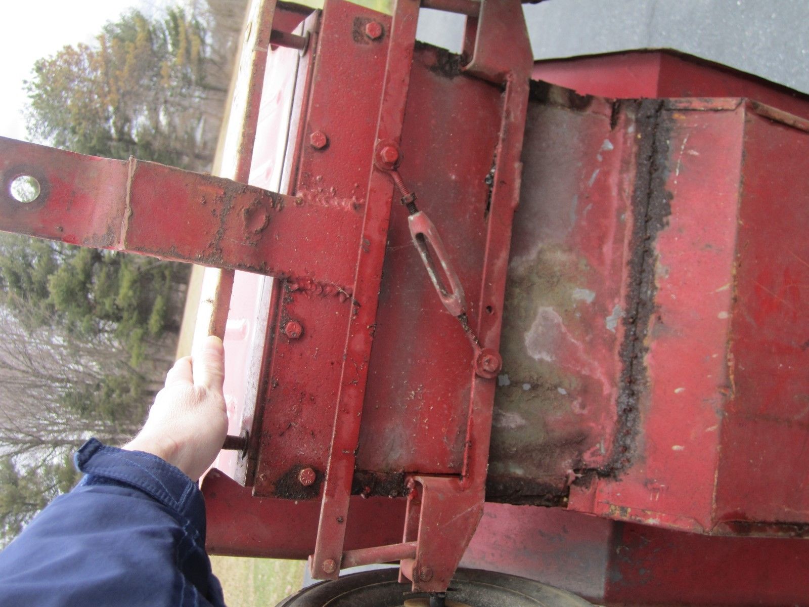There are some minor dings and there are signs of filler. No rust-thru. Some surface rust. Wheels are in very poor condition. Front spindles are worn.