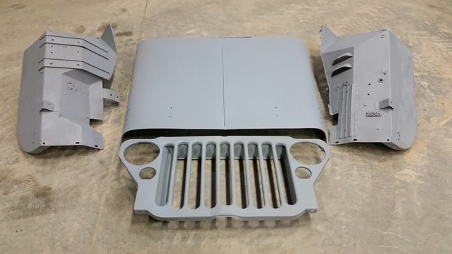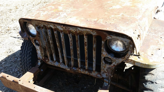 I also have a whole original MB front half body leftover from my restoration. The pieces are very solid and have a few little patches on them (inside). Both fenders have surface pitting that can be filled in, and I already filled in the hood. The hood is slightly warped down on the driver side and the grille has a slight bend on the end. On the fenders, the reinforcements aren’t rusted out like most others. As a whole, all these pieces are solid on the usual rotted out places and in great condition. I’d like to get $400 out of them, or would do some trading for an MB canvas top!”