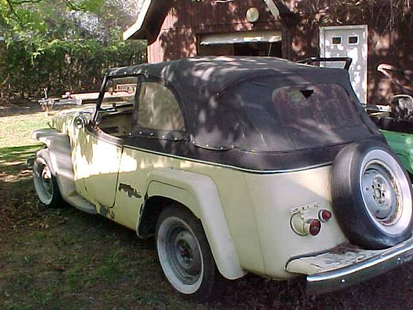 “I have two willy jeepster the 49 would make a good restore project about 80 percent there, have clean title for that car ,been in storage for over 25 years front fender have been dip preety soild car,the other would make a good parts car or rat rod,it sitting on a 78 corvette frame,rocker need trimming and it will sit down on the frame nice ,no floors but body is preety good,they only made 20,00 jeepsters over 3 years they make cool hot rods, green one only has bill of sale,were selling and need to get rid of some projects,will take 1000.00 for just the green one ,or 2800.00 for the yellow one if sold apart, or 3500.”