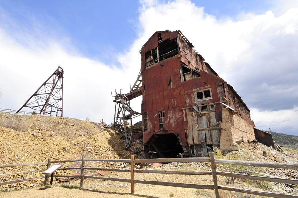 An example of the left over ore processing buildings. Note the sagging ladder to the left of the building.