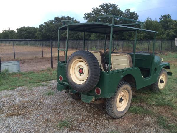 “1953 Willys jeep, 4×4, gun rack, good tires, really fun to drive around, great for the hunting lease!”