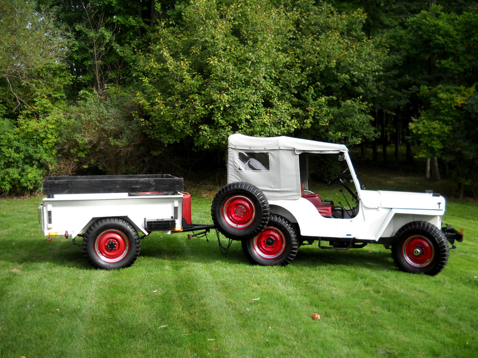 “You are bidding on a RARE beautiful restored, all-original, Super-solid ALL-STEEL WILLYS BODIED 1950 Willys Jeep CJ-3A with Matching Utility Trailer. She’s in beautiful, SHOW-QUALITY CONDITION! This frame-off restored Jeep is super straight, with a rock-solid body that has NOT been patched and a beautiful Arctic White paint job! The “Go Devil” 4-cylinder engine and transmission are original pieces that were also restored and run perfectly. She’s TURN KEY! Everything works on this Willys 4×4 and with the new tires, new canvas top and heater, she’s ready for the next adventure… with you!