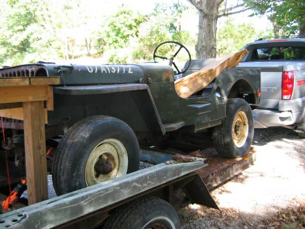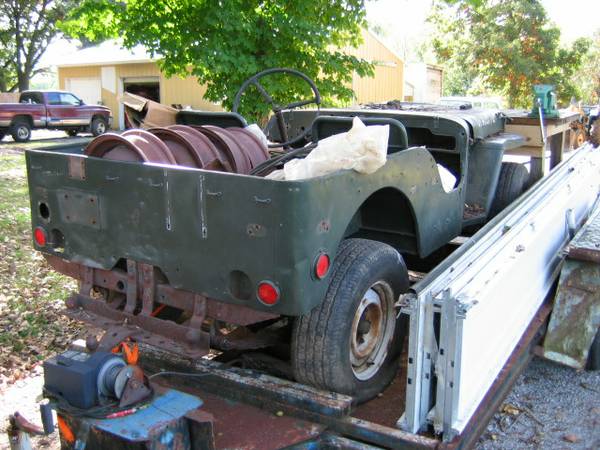 “This is a great project for a Jeep person! Two Jeeps for the price of one. First is a military MB Jeep. The body is in good shape, solid, has recored radiator, new front bumper, original rims have been blasted and ready for paint in the back. Some other parts in boxes go along with also. No engine, transmission or transfer case. This one is easily restoreable and would be a great parade vehicle or military collectible. The second Jeep is a civilian CJ2A which is very similar to the first one, it has the drivetrain still in it. Engine is stuck but could probably be freed up. Body on this one is not as bad as some , between the two you can make one runner! Neither one currently has a title, but can be titled with little effort. Asking $2200 or best offer for both, need to go before winter so come look and make an offer!”