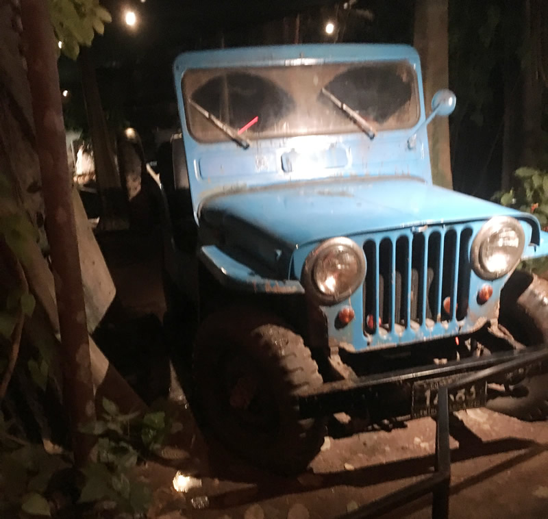 Andrew spotted this blue CJ-3A in the Rain Forest area of the Milwaukee Public Museum and took most of these photos. The staff informed him that it was used by a museum research team in the 1980s. According to the museum’s webpage, the team collected specimens in Costa Rica during 1986. Since the CJ-3A’s license plates are Costa Rican, they may well have used the jeep in Costa Rica and brought it back with them.
