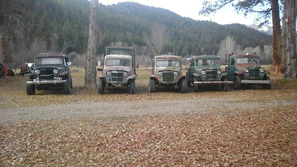 “uy your loved one who desprately needs another “project”!something they really want for christmas! It is time to thin the herd a little. All jeeps are complete except for the flatbed. Wagons have small block chevys. Trucks are fords. Flatbed has no motor. All have titles and ran when parked. I have extra transmissions, transfer cases, fenders, hoods, grills, and everything else a jeep hoarder would have. Also have full size parts and cj. Will trade for cash and cash. Flatbed $800 all others $1000. come get them so I can buy more.”