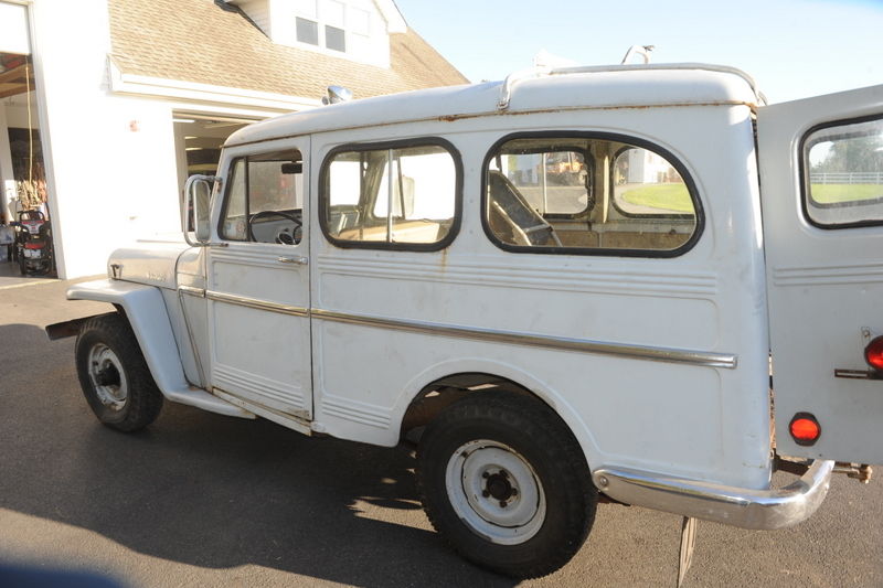 “One owner 1963 Willy’s Traveller with the 230 tornado engine. It has the rare roof mounted spare tire rack, the high roof with the outer rounded fender wells. Also has the inner cut fender wells for the fold down seats and a PTO winch. The only major rust on the rig is the driver floor boards will have to be replaced.”