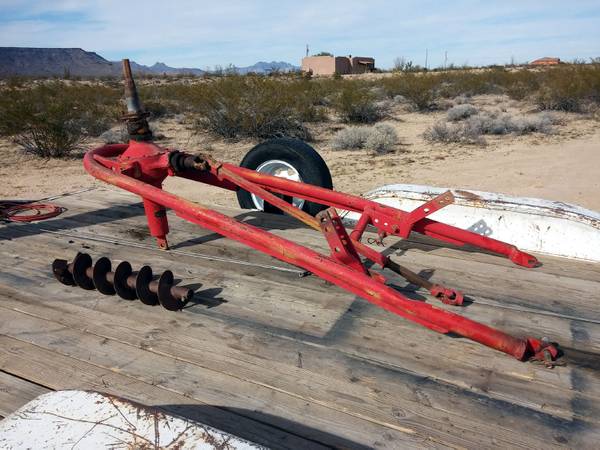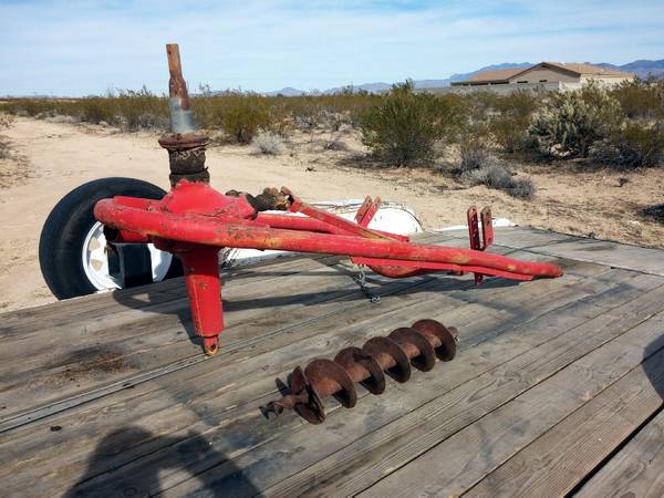 “1940’s Roper Iron Works pto post hole digger for Willy’s Jeep or tractor in good condition. Appears to be complete and comes with auger, may have two others. Turns smooth and freely. Located about 30 miles north of Lake Havasu City”
