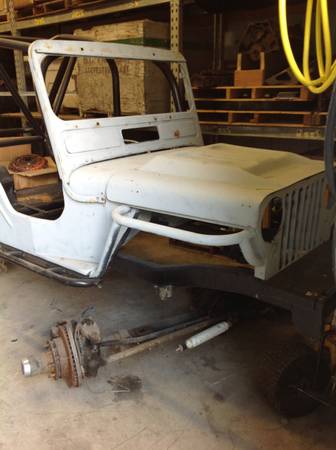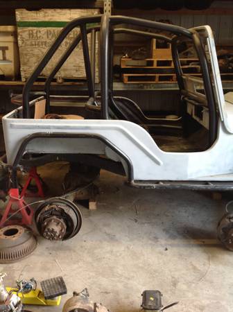 “New fiberglass tubb, cj2a boxed frame with title. Custom roll age with seat mounts and rear tire mount. Custom exo rear bumper, rock sliders, and hand fabricated front fender frames. Original windshield frame and grill.”