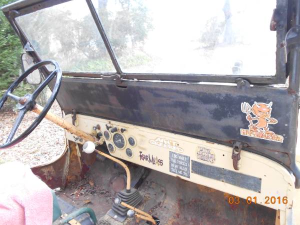 “I have a 1949 Willys Flat Fender Jeep CJ3A for sale. This is a very solid jeep ready for restoration. Runs and drives well, and can be used as is. This one has the high and low range with 4 wheel drive, all of which works perfectly. Brakes are good, and steering is tight. Has a fabricated front bumper/brush guard and towing hitch. Sold with bill of sale only; Georgia does not title vehicles this old.”