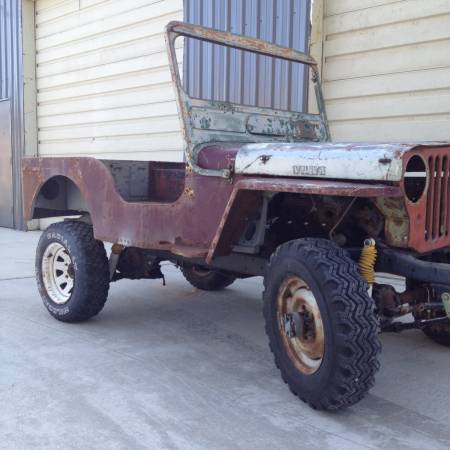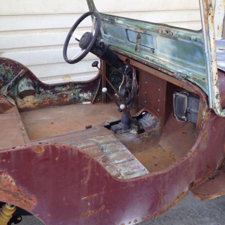 “I think it is a 1948 cb-2a someone started to restore it new spring shackles and u bolts new shocks lots of new sheet metal welded in frame has been sandblasted new trams adapter has a newer Chevy V6 newer jeep steering column brake and clutch pedal heater box someone started a nice project”
