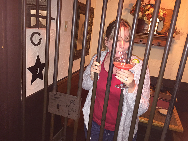 We finally ended our day at Ely. After doing a Yelp search, I told Ann we should eat dinner downtown at the Jailhouse Steakhouse, a place where diners can eat in a jail cell. It was fun and the food was good. There’s also a bar, casino, and motel. We could have stayed at the Jailhouse motel, but I read that the bar and motel smelled like stale cigarettes (have to be careful with Ann’s asthma). However, after spending some time in the bar and restaurant, I think that claim was oversold. I would have rather stayed at the jailhouse so we could have had some drinks and walked back to our room. As you can see, at least one of us enjoyed a drink 🙂