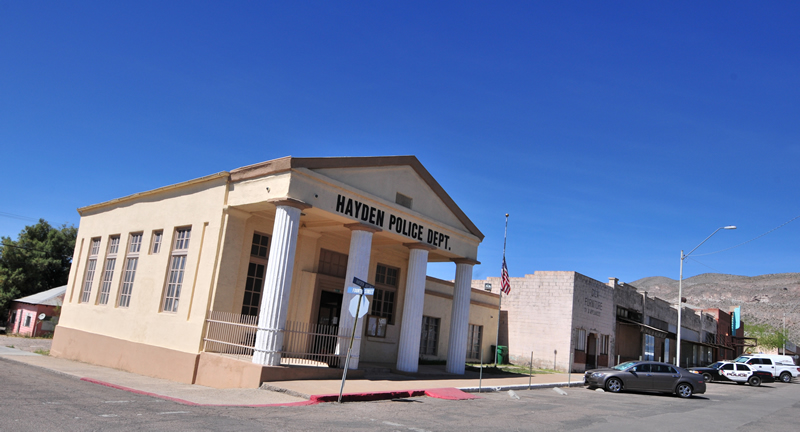 At some point Hayden was a proper town with stores and a theatre, but these days it’s pretty near a ghost town, despite the fact the smelter is still in operation. At least the police station looked good. The rest of the buildings on this street were closed.