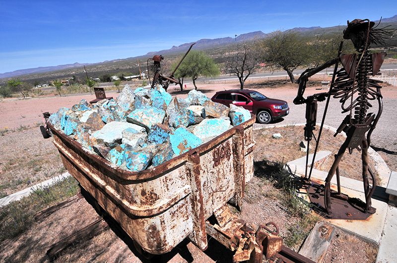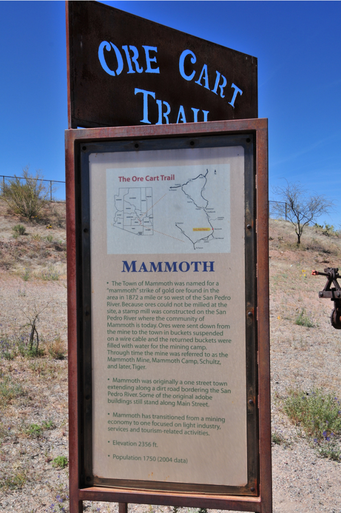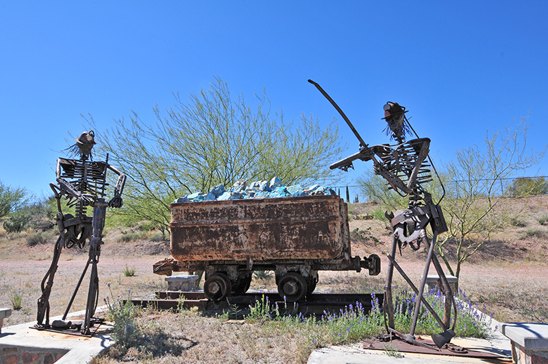 From the Biosphere, we headed north for Hayden Arizona. Along the way we spotted a park with some unusual sculptures celebrating the importance of mining to a small town ironically called Mammoth.