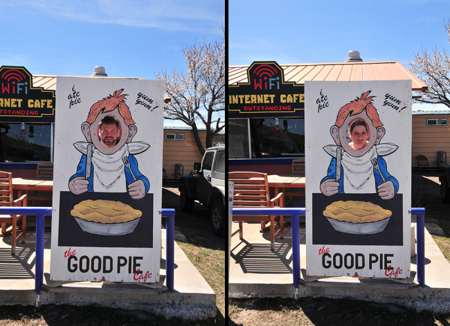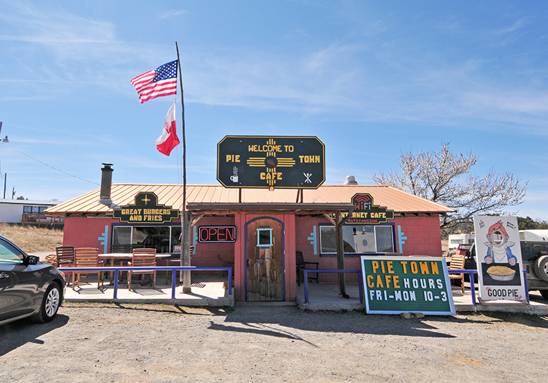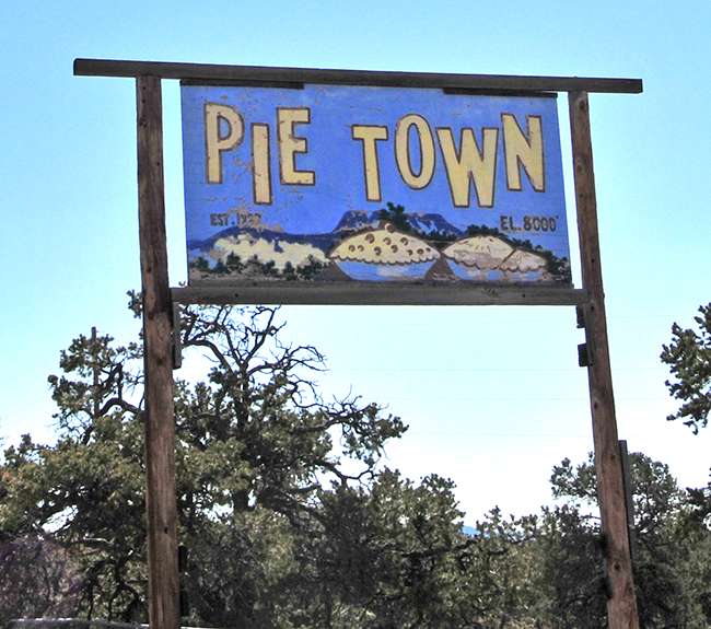 It wasn’t long before we arrived at the tiny burg of Pietown. An oasis for desert hungry travelers, we’d heard the local pies were delicious. There were three different pie places to choose between; we decided to pull into The Pietown Cafe to test out their pies. Our blackberry and New Mexico apple pies did not disappoint! While Ann could only enjoy the innards of the New Mexico apple pie, which included a little green chile and pine nuts, I feasted on the crusts of both pies. I’m not normally a big pie eater, but both were delicous. Even better, the staff was friendly and informative.
