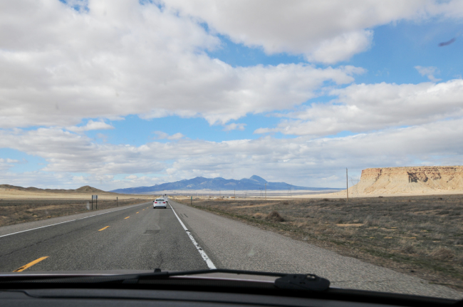 We awoke on Wendesday morning to learn that Mother Nature had decided to spoil the Coloradoans early spring by sending a wintery blizzard through the Denver area. Winds accompanied the snow (it remained very windy in Albquequerque as well), causing a snow plow to tip over at the Denver airport. We didn’t have to read much of the news to decide that we were ready to save Colorado for another day. So, we altered our plan to drive up the eastern slope of the Rockies in favor of driving the short route home through Utah.