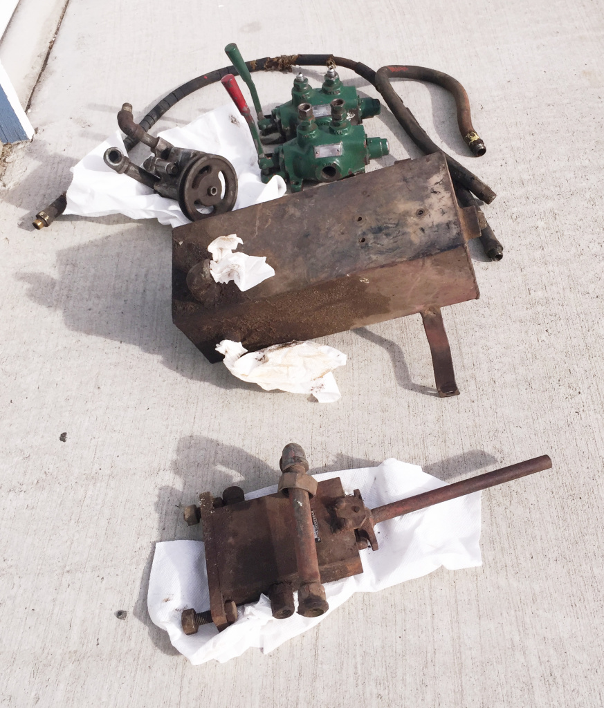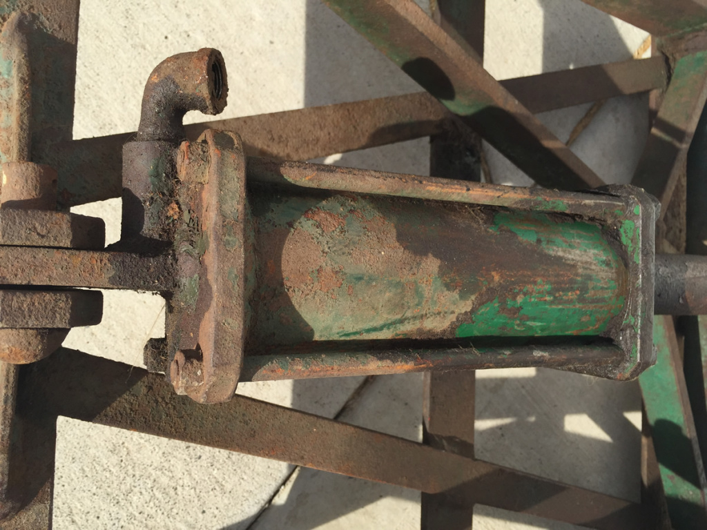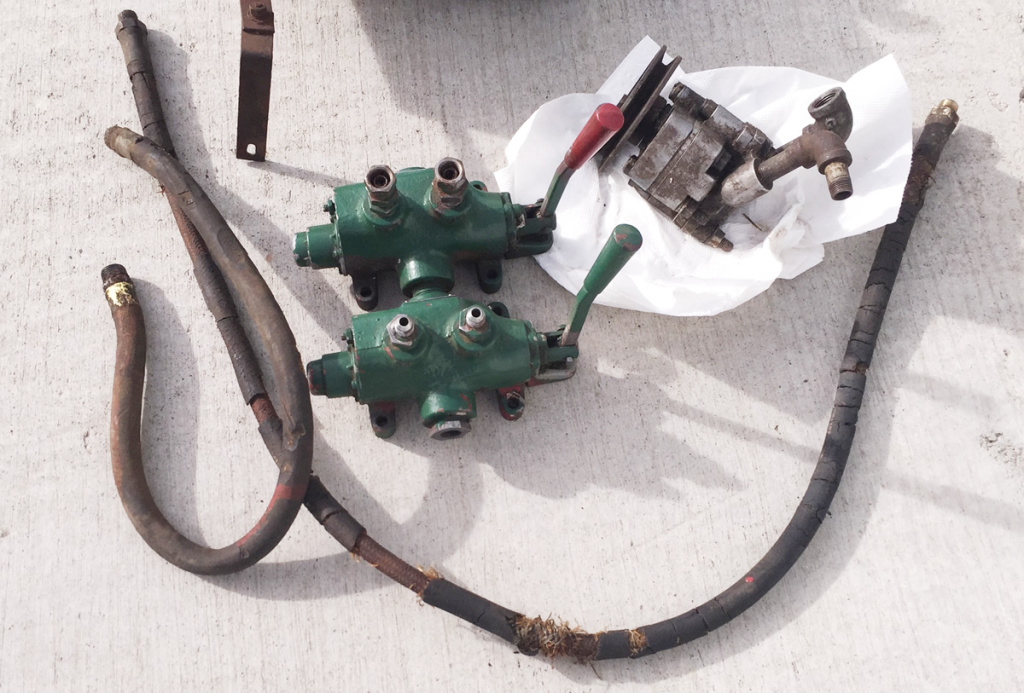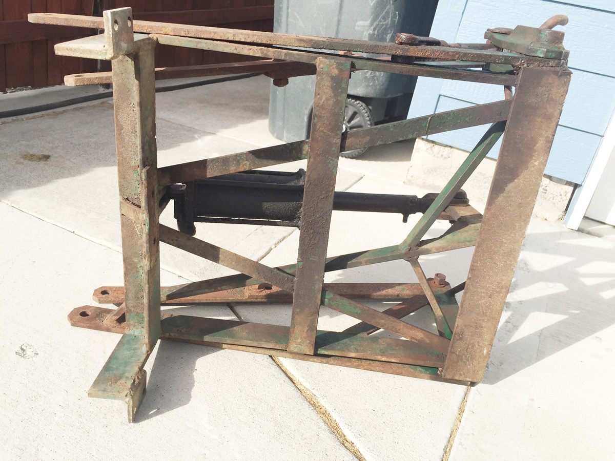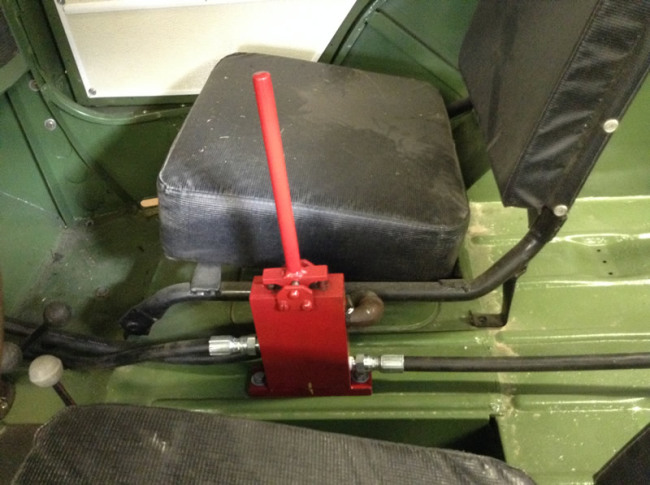 John Ittel bought this hydraulic lift a few months ago and has already restored it. This unit, sold through Mellen, began life on a 1948 CJ-2A from Northeast Washington State. The jeep and lift were barely used before the jeep and hydraulic unit were stored. There they sat for decades. Eventually, the lift was removed. Note that the green dual hydraulic piece shown was not a part of the system, but reportedly was installed on a different jeep that ran an extra large post hole digger installed on a 2A that operated in the Seattle area.
