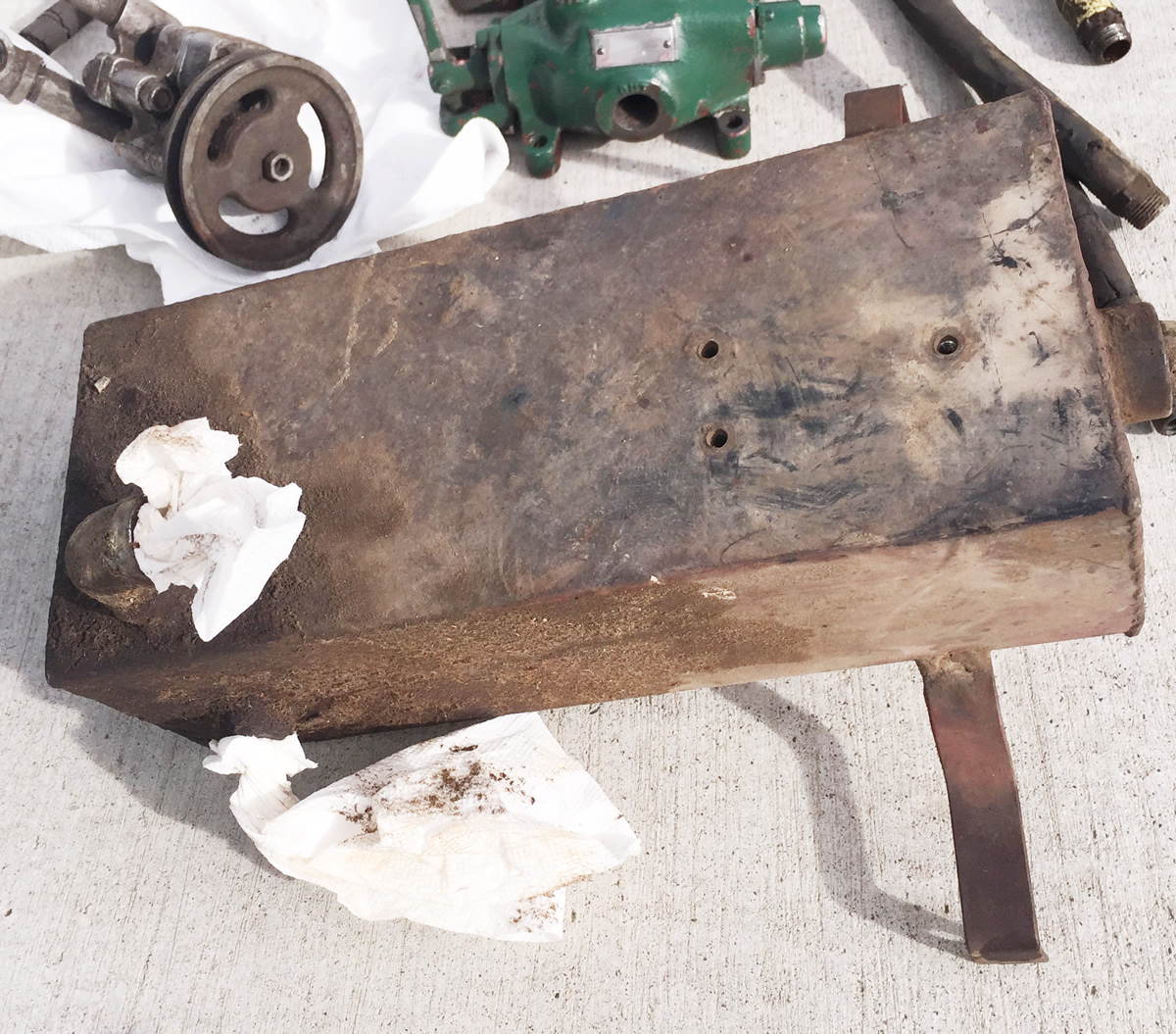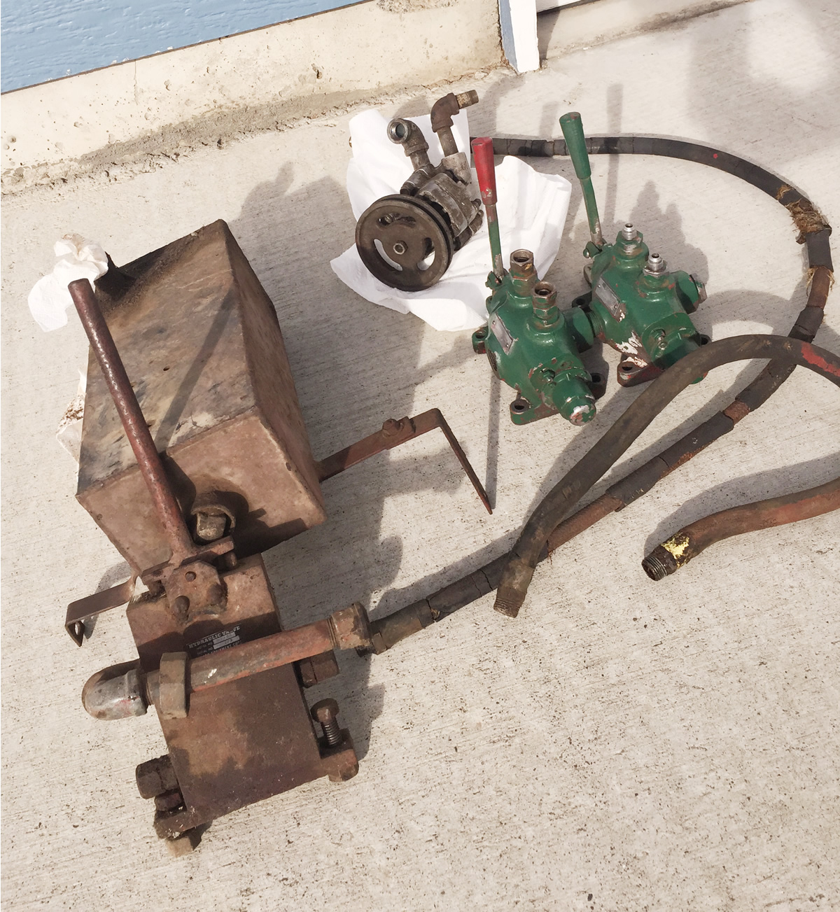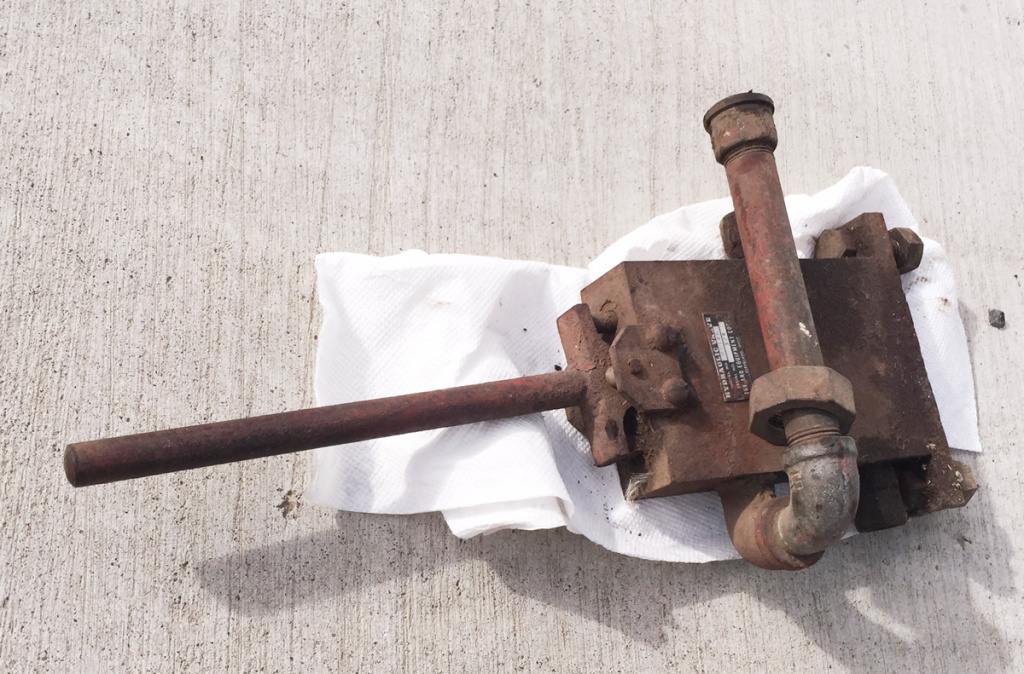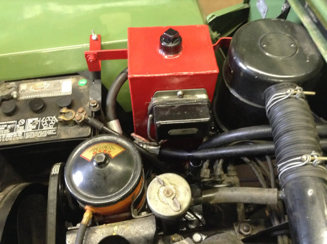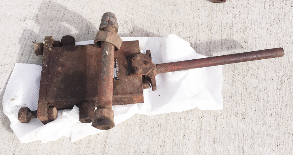 John Ittel bought this hydraulic lift a few months ago and has already restored it. This unit, sold through Mellen, began life on a 1948 CJ-2A from Northeast Washington State. The jeep and lift were barely used before the jeep and hydraulic unit were stored. There they sat for decades. Eventually, the lift was removed. Note that the green dual hydraulic piece shown was not a part of the system, but reportedly was installed on a different jeep that ran an extra large post hole digger installed on a 2A that operated in the Seattle area.