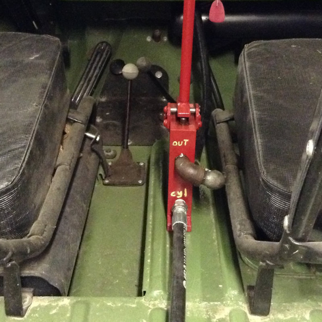Since the hydraulic valve mounted between the seats I decided that rather than drilling holes in the floor for the hydraulic hoses I would run them along the floor and up through the firewall. The engine compartment is getting rather cramped.